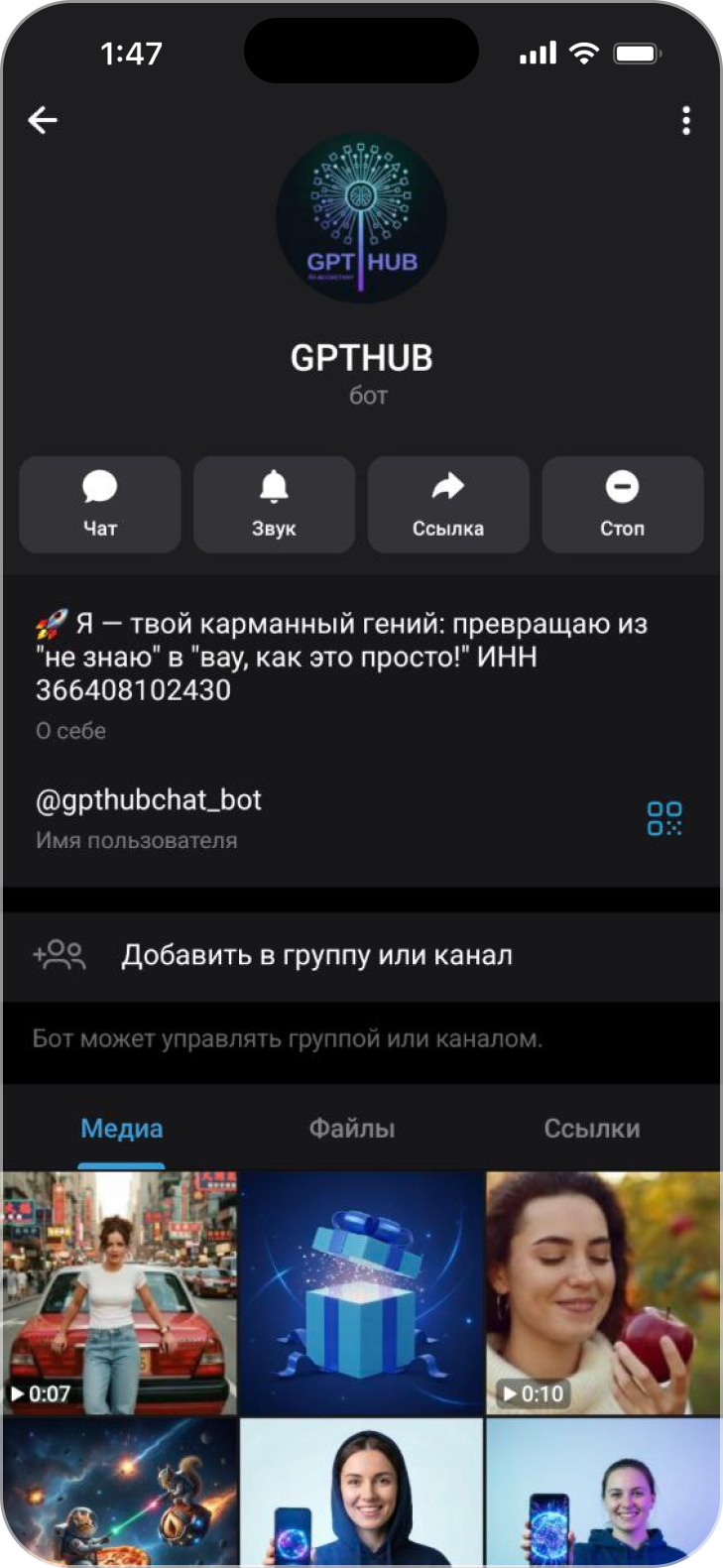 Вместо десятка отдельных сервисов с собственными подписками вы общаетесь с одним ботом: напишите свою задачу, бот определит ожидаемый результат — генерацию картинки или видео, а потом предложит модель на выбор.